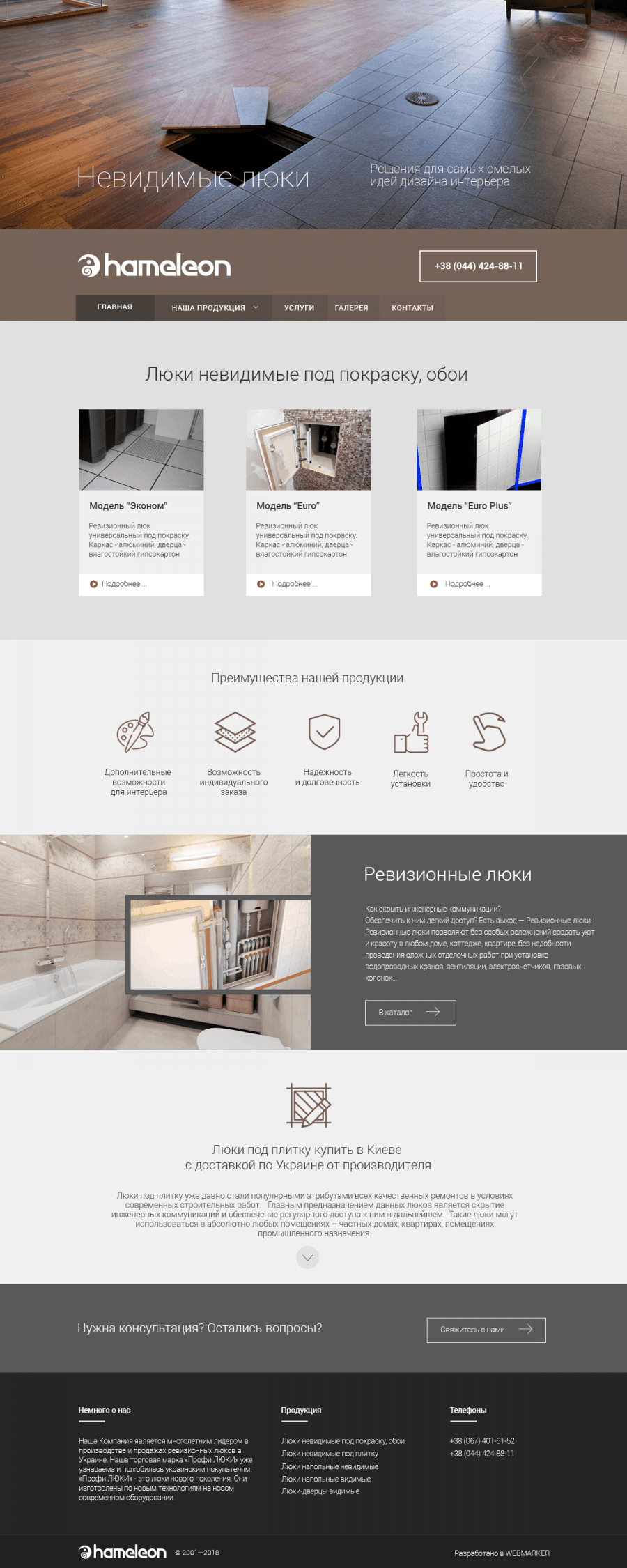 Создание интернет магазина, каталога продукции люков скрытого монтажа. Уникальный дизайн и адаптивная версия
