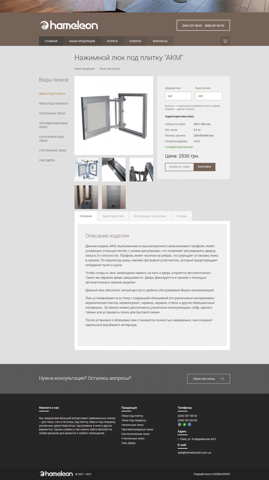 Hameleon. Интернет - магазин люков скрытого монтажа