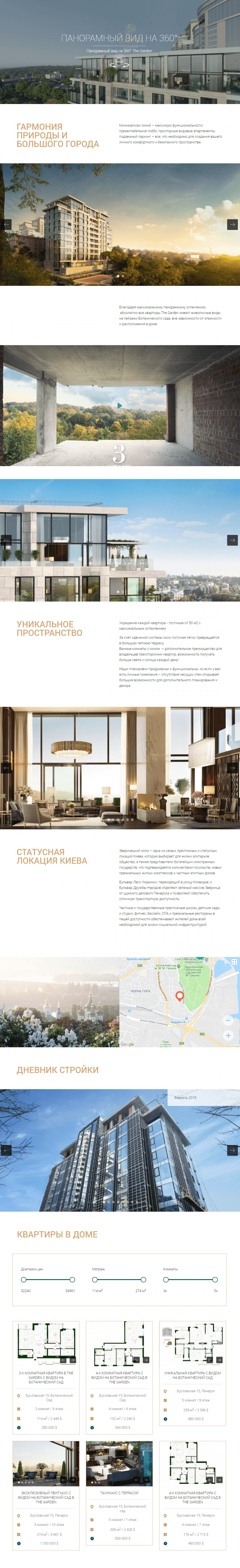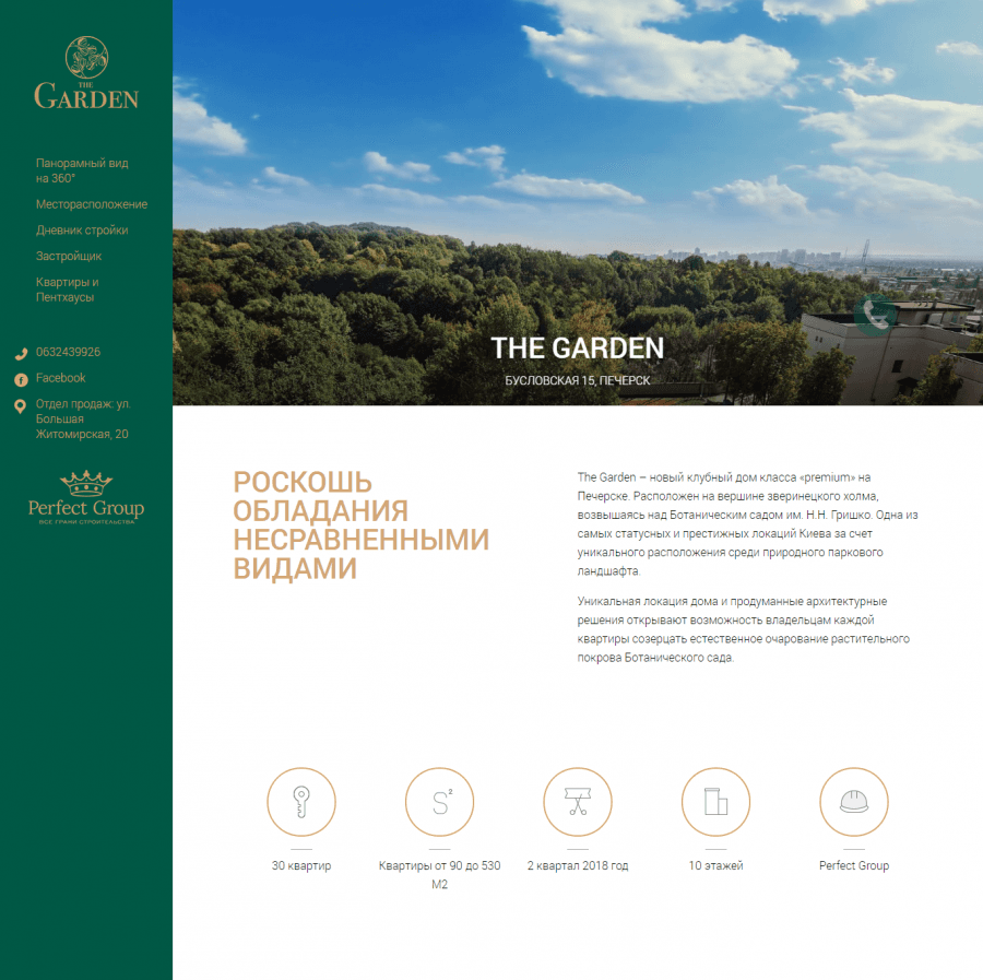 the-garden. Завершили работу над созданием и наполнением сайта The-Garden - нового комплекса апартаментов на Печерске.