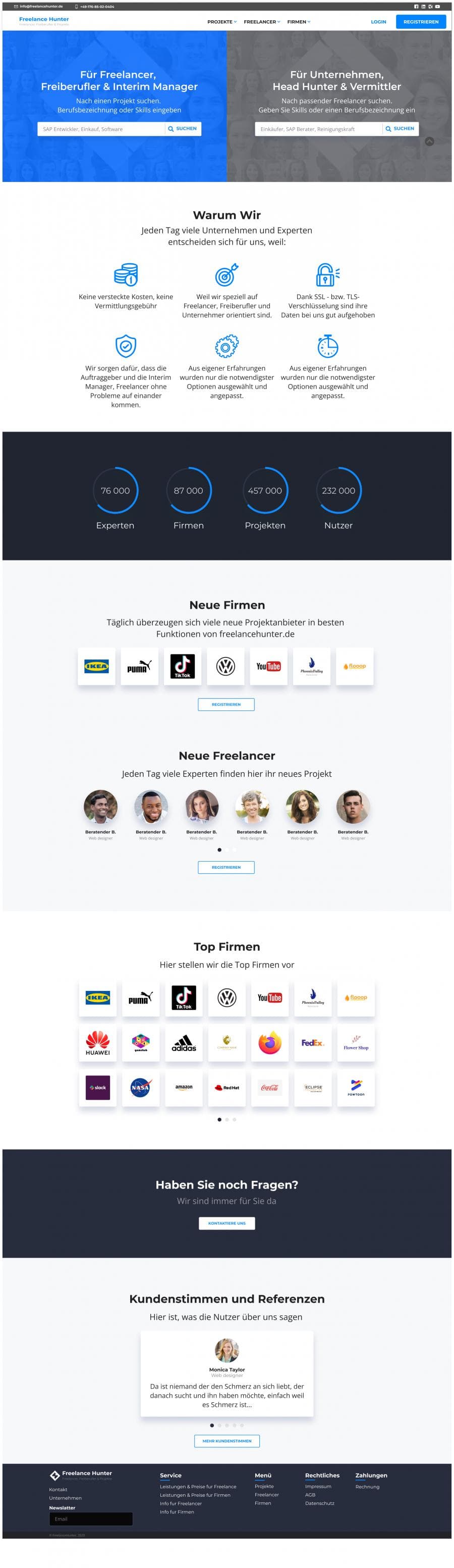 Freelance Hunter. Сервіс з пошуку фрілансерів та проектів. На сайті доступні як безкоштовний так і платни функціонал, доступна внутрішня пошта, заявки на проекти та сортування