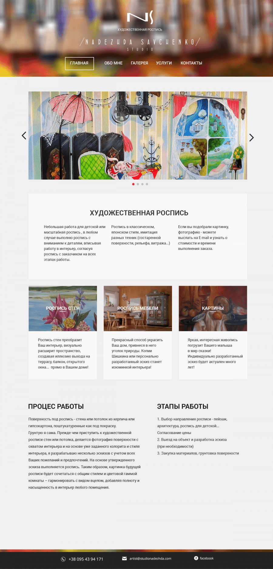 Художній розпис. Сайт художниці Надії Савченко. Опис та пропозиція послуг художнього розпису на сітнах та потолках а також розпу по мебелі.